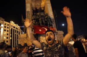 Сейчас на площади в центральной части Стамбула Таксиме наблюдается большое скопление людей, тех кто явно не поддерживает Эрдогана, рассказал в эфире программы Baltkom-онлайн на радио Baltkom журналист Новой газеты Андрей Жвирблис, который находится в 500 метрах от площади Тасим. По его словам, над Стамбулом барражируют истребители, в городе ведется беспорядочная стрельба.