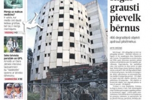 А газета Latvijas Avīze пишет об опасных развалинах и брошенных стройках в Риге, привлекающих детей. Таких объектов в Риге 466, они разделены на три категории. Тут же Лато Лапса пишет о недостоверной информации в декларации о доходах кандидата в руководители СГД Инги Колеговой, та объясняет, что ошиблась при вводе информации вручную. На третьей странице - карикатура на рижского мэра, который пишет в фейсбуке по-русски, газета поддерживает недовольство Центра госязыка. А рядом обозреватель Мара Либека, пишет, что у нас-то здравоохранение ещё ничего и приводит страшные примеры из России, например, из Республики Коми. Ещё пишут о поисках пропавшего в лесу ребенка и о ситуации в Донецке, рассказывает сотрудник миссии ОБСЕ Дидзис Нимантс, из латвийского министерства обороны. Он 14 месяцев пробыл на Восточной Украине, после чего его направили на десятидневные курсы социальной реабилитации.