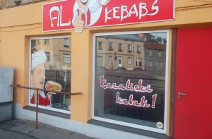 На витрине заведения общепита изображен президент Турции, поедающий кебаб.