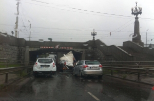 Стоит отметить, что это уже не первый подобный случай. Водители грузовых автомобилей неоднократно застревали под Каменным мостом.