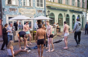 Во время прогулки по Старой Риге поэт заметил группу норвежских студентов, которые проходили традиционный для начала нового учебного года обряд посвящения. Одно из «заданий» заключалось в том, что молодые люди должны были выстроить как можно более длинную беспрерывную линию, используя одежду и собственные тела.