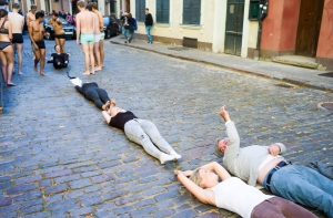 Орлуша решил присоединиться к студентам и принял горизонтальное положения рядом с одной из девушек.