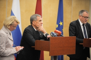 Пресс-конференция с участием Минниханова состоялась после встречи с министром экономики Арвилом Ашераденсом.
