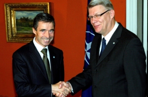 8 октября 2009 года прибывший в Ригу с однодневным визитом генсек НАТО Андрес Фог Расмуссен (на фото - слева) заявил интервью Латвийскому радио, что Россия не несет угрозы ни одной из стран-членов НАТО.