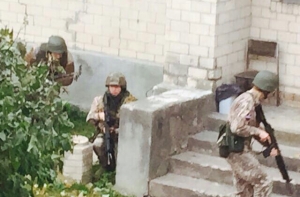 Сегодня в Саласпилсе, в районе городской думы несколько вооруженных автоматами людей в масках вели стрельбу и передвигались мелкими перебежками, прикрывая друг друга, сообщили очевидцы.