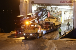 27 октября 2015 года на Адажскую военную базу была доставлена американская тяжелая бронетехника для участия в операции Atlantic Resolve. Всего прибыло восемь танков Abrams и девять бронетранспортеров Bradley.