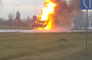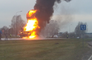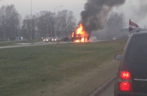 Пострадавших нет, движение по направлению из Юрмалы в Ригу перекрыто, на месте работают пожарные.