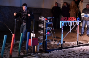 Сегодня на Ратушной площади зажгли главную городскую рождественскую елку. При этом, елка была зажжена при помощи самой длинной цепи Руба Голдберга, состоящей из 412 звеньев цепи. Таким образом, Рига установила новый рекорд, побив тем самым прежний рекорд, принадлежавший США. Там была создана цепь Руба Голдберга из 383 звеньев. Установку рекорда Гинесса подтвердила представитель Guiness World Records из Германии Сейда Субаци-Гемици, которая вручила мэру Риги Нилу Ушакову соответствующий сертификат.