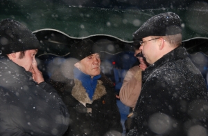 В тот же день,около 9 часов утра, премьер-министр Валдис Домбровскис провел примерно полчаса в палаточном городке напротив здания правительства. Премьер выслушал мнения протестующих об отъезде молодежи из Латвии, о возможной недобросовестности при введении электронного талона и о других проблемах. На вопросы он старался давать ответы общего характера. Домбровскис призвал всех участников акции прекратить ее, в основном из соображений здоровья, и поздравил их с наступающим Новым годом. Это была вторая встреча главы правительства с обитателями палаточного городка.