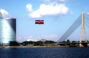 7 января 2015 года стало известно, что в результате интерактивного голосования в рамках проекта «Латвийский флаг» лучшим местом для размещения монументального флага государства к столетию Латвийской Республики была признана дамба АБ в Риге, за которую проголосовали 3983 человека. Второе место занял перекресток улиц Бривибас и Элизабетес (3615 голосов), а третье - сквер у здания Cведбанка (2046 голосов). Об этом сообщила координатор проекта Марта Кактиня. Были названы примерные размеры монументального флага в Риге: площадь 10х20 метров, высота флагштока - 60 метров.