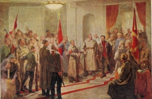 13 января 1919 года в Риге, в помещении теперешней Национальной оперы и балета, состоялся первый Вселатвийский съезд советов рабочих, безземельных и стрелковых депутатов. Почетным председателем съезда был избран Ленин. В работе съезда принимал участие председатель Всероссийского Центрального Исполнительного Комитета Яков Свердлов. Выступая с приветствием от имени ВЦИК он сказал: «Чем больше усилий прилагают империалисты, чтобы уничтожить нашу власть, тем больше она укрепляется». Cъезд провозгласил Социалистическую Советскую Республику Латвии во главе с Петерисом Стучкой. И принял первую латвийскую конституцию.