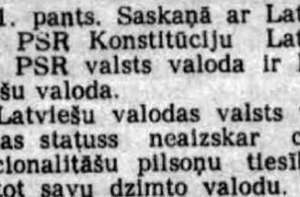 **2 февраля 1989 года** был опубликован проект решения Верховного Совета Латвийской ССР, предусматривающий изменение конституции и утверждение Закона о языке, и проект Закона о языке Латвийской ССР, в первом пункте которого было указано, что статус латышского языка как государственного не задевает прав граждан использовать свой родной язык.