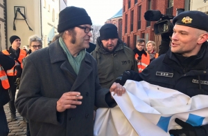 «Обстановка спокойная. Оживление вызвало лишь задержание двух антифашистов с соответствующим плакатом», - рассказал он.