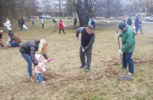 Мэр Риги Нил Ушаков вместе с семьей - супругой Иветой и сыном Томом, а также со своими единомышленниками принял участие в Большом субботнике.