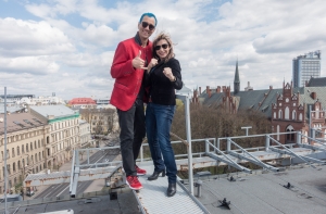 _Винцент Лин с киноактрисой Синтией Ротрок на крыше радио Baltkom_