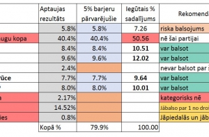 Судя по таблице, то можно голосовать за так называемые латышские партии, рискованно голосовать за представителей СЗК, нельзя отдавать голоса за партии «Согласие» и «Честь служить Риге», которые названы «Группой друзей Кремля». Ну и категорически запрещается «сливать голоса», делая выбор в пользу «другой партии».