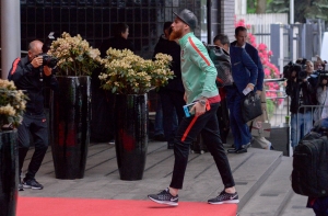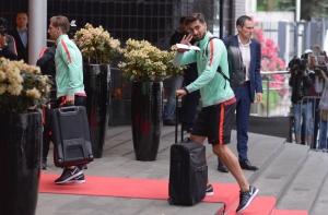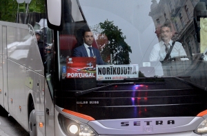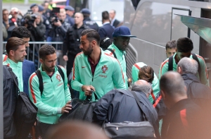 Фотокорреспонденту Mixnews.lv Марису Моркансу удалось заснять выход сборной Португалии из автобуса у гостиницы Radisson Blu Ridzene Hotel, которую забронировали на два дня специально для приема футболистов.