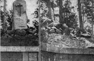 9 июня 1929 года, около 2 часов ночи, на Лесном кладбище Риги был взорван памятник солдатам балтийского ландесвера, погибшим 22 мая 1919 года в бою против большевиков. Как писали газеты, взрыв был такой силы, что в домах Чиекуркалнса выбило стекла. Памятник был открыт 22 мая. Взрывников так и не нашли. Памятник был восстановлен в 1939 году, взорван в советское время, и восстановлен в 2001 году, но уже в другом виде. На фото - памятник до и после взрыва.
