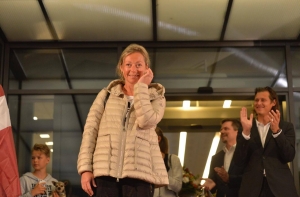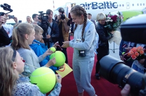 Латвийская теннисистка Алена Остапенко, ставшая победительницей Открытого чемпионата Франции по теннису, вечером 12 июня прилетела в Ригу. В Рижском аэропорту ее встретили друзья, болельщики, а также многочисленные журналисты, передает корреспондент Mixnews.