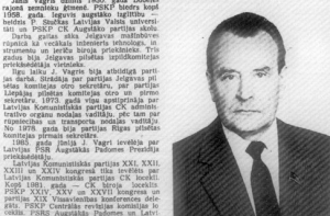 22 июня 1985 года председателем Верховного Совета Латвийской ССР был избран Янис Вагрис.