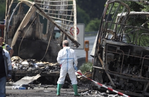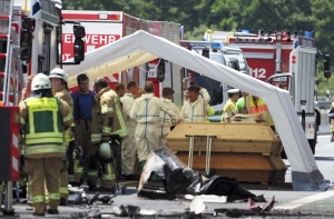 Сегодня, 3 июля, во время утреннего часа пик на автобане в Баварии рейсовый автобус, направлявшийся с севера Германии в сторону Нюрнберга, столкнулся с грузовиком, после чего загорелся и полностью выгорел.