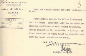 В тот же день президент Карлис Улманис внес на текущий счет Коммунистической партии Латвии 5 тысяч латов на нужды Красной помощи – организации, помогавшей революционерам. Таким образом Улманис стал крупнейшим спонсором коммунистов.