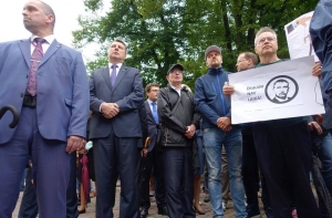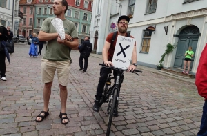 Как сообщил специальный корреспондент портала Mixnews, в пикете приняли участие представители Новой консервативной партии и бывшие сотрудники Бюро по предотвращению и борьбе с коррупцией Юрис Юрашс и Юта Стрике и депутаты Рижской думы.