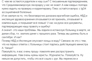 Получается, что у нас можно ставить диагноз с неба, плевать на нормативы, оставлять ребенка без лечения, и не нести никакую ответственность? У нас можно лгать, чтобы скрыть ошибки? А сверху это прикрывают? Повторюсь, с момента установления лихорадки, ни один врач не поставил артрит. Они вообще этот момент старались скрыть?», - написал Денис.