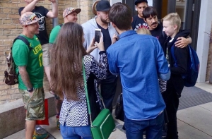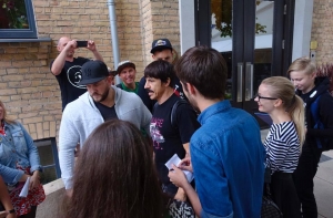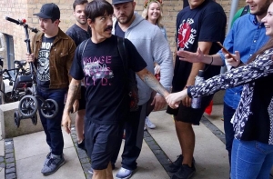 Группа Red Hot Chili Peppers перед выездом на концерт, который сегодня состоится на Луцавсале, раздали автографы фанатам, которые караулили своих кумиров у гостиницы, сообщает фотокорреспондент Mixnews Марис Морканс.