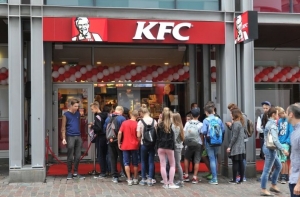 В тот же день в Риге, на улице Аудею 14, открылся новый ресторан быстрого обслуживания KFC (Kentucky Fried Chicken) - первый, как сообщалось, ресторан KFC в Латвии. В Риге на открытие ресторана выстроилась огромная очередь. Первым 500 посетителям, которые придут на открытие в черных бабочках, были обещаны бесплатные порции, что и вызвало ажиотаж.