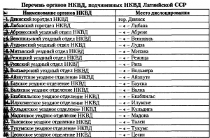В тот же день приказом №001072 народного комиссара внутренних дел CССР Берии был организован Народный комиссариат внутренних дел Латвийской ССР, с дислоцированием в городе Рига. Ему были подчинены органы НКВД, перечисленные в прилагаемом перечне.