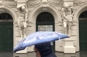 Адвокат Иева Андерсоне ищет наилучшую защиту от дождя.