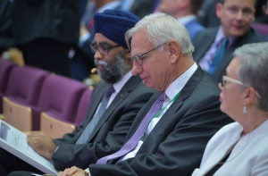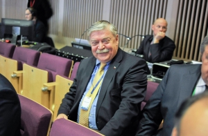 Открыл конференцию президент Латвии Раймонд Вейонис. В своей речи он затронул вопросы перспектив стран Восточного партнертства, роль НАТО в мире и другие актуальные вопросы. Но, видимо, в свете последнего скандала с произношением на английском языке, глава государства так нервничал, что оговорился, назвав Берлинскую стену «Балтийской стеной», сообщает корреспондент радио Baltkom.