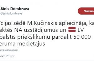 «На заседании коалиции Марис Кучинскис подтвердил, что будет уважать установку Национального объединения и Латвия не поддержит предложение о распределении между странами 50 000 ищущих убежища», - написал политик.