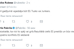 На комментарий, что это по идее должны сделать глава Совета ЕС Дональд Туск или глава Еврокомиссии Жан-Клод Юнкер, Пабрикс ответил, что не выглядит так, что они могут или хотят это. А между тем, в результате этого пострадает престиж ЕС и будет один серьезный конфликт внутри ЕС.