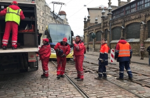 В Риге приостановлено движение 11-го трамвая по маршруту Межапарк - Центральная станция.