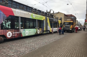 «Сейчас движение 11-го трамвая заблокировано в обоих направлениях. Из-за технических неполадок трамвай сошел с путей на улице Матиса. В ближайшее время движение будет возобновлено», - сказала Барташевича-Фелдмане.