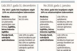 «До сих пор, если вы платите налог в размере 23% процентов, то вы имеете право раз в год вернуть определенную сумму. Правда, существует ряд ограничений на возврат в медицине. Но зубной, например, компенсировался полностью. На возмещение средств на потраченные услуги образования и медицины предусматривалось до 215 евро в год», - пояснил Даболс.