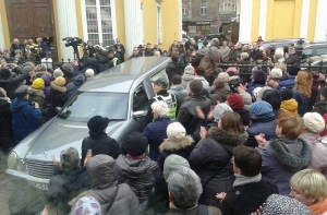 Сотни людей сегодня утром выстроились в очередь у входа в собор Александра Невского в Риге, чтобы проститься с сатириком Михаилом Задорновым.