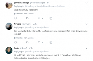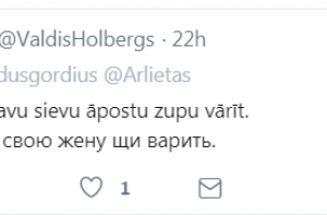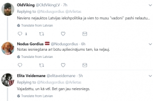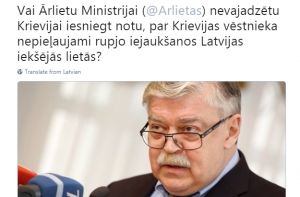 «Не надо ли МИД Латвии вручить России ноту о недопустимости грубого вмешательства российского посла во внутренние дела Латвии?», - пишет пользователь латвийского сегмента Twitter под ником Нодус Гордиус.