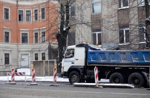 Движение транспорта частично ограничено на улице Пулквиежа Бриежа.