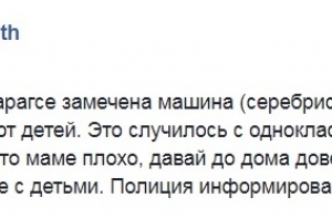 «Люди, у нас в Кенгарагсе замечена машина (серебристая тойота), в которую заманивают детей. Это случилось с одноклассником сына. Из машины сказали, что маме плохо, давай до дома довезем. Мальчик убежал. Поговорите с детьми. Полиция информирована», - такой пост был размещен в группе «Кенгарагс» в соцсети Facebook.