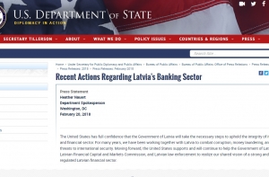 Как говорится в заявлении Госдепартамента, США многие годы сотрудничают с Латвией в борьбе с коррупцией, отмыванием денег и другими угрозами международной безопасности.