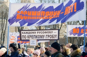 «По словам Деги Караева, русское население - это часть Латвии и обучение на русском должно быть в Латвии сохранено. Некая девушка выступила эмоционально, буквально со слезами на глазах сказала, что деды обеспечили светлое будущее и мы должны следовать заветам и его сохранить. Звучали и кричалки достаточно резкого характера, например, с концовкой «Это наша страна - дурик прыгни из окна»», - рассказал журналист.