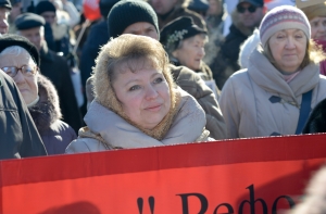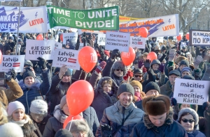 По наблюдениям Mixnews, люди стекаются к памятнику Райниса, где проходит акция, со всех сторон. Несмотря на мороз в -11 градусов, среди присутствующих есть как взрослые, так и дети. Участники держан в руках плакаты «Руки прочь от русских школ», «Каждому русофобу по крепкому кробу!», «Ассимиляции - нет!», а также красные шарики.