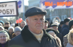 Перед собравшимися выступают активисты Русского союза Латвии, в том числе Мирослав Митрофанов, Деги Караев, и другие.