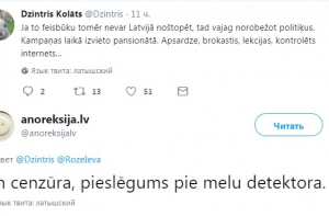 «Если этот Facebook все же в Латвии нельзя «забанить», то надо ограничить политиков. Во время кампании их надо разместить в пансионате. Охрана, завтрак, лекции, контролируемый интернет», - написал Колатс.