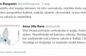 Таким образом инвестиционный банкир прокомментировал мнение пользовательницы Twitter Анны Уле Роне, которая указала, что только в нескольких странах Европы, в том числе и странах Балтии усиленно изучают русский язык. По ее мнению, это не что иное, как желание интегрироваться с восточным соседом.