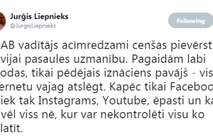 внимание всего мира. Пока хорошо получается, только последний выход слабоват - весь интернет надо отключить. Почему только Facebook? Остаются же Instagram, Youtube, электронные почты и еще куча всего, где можно все бесконтрольно распространять», - написал Лиепниекс в Twitter.