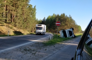 На дороге Таллин-Рига, примерно в пяти километрах от Балтезерса, потерпел аварию польский дальнобойщик. Фура съехала в кювет, водитель не пострадал. Об этом порталу Mixnews сообщили очевидцы, проезжавшие мимо около 6 часов утра в субботу, 26 мая. Позднее, водители проезжавших мимо легковушек, заглядевшись на опрокинутый грузовик, сами устроили ДТП.